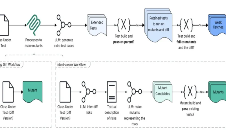The technical underpinnings of this system involve a sophisticated pipeline that integrates several advanced technologies. Large Language Models (LLMs) are employed to understand the semantic meaning of code changes and infer developer intent. Program analysis techniques are used to examine the code structure and identify areas that might be susceptible to errors. Furthermore, mutation testing plays a pivotal role by injecting synthetic defects into the code. This process validates the effectiveness of the generated tests by ensuring they can successfully detect these artificially introduced bugs, thereby confirming their ability to catch real-world regressions.